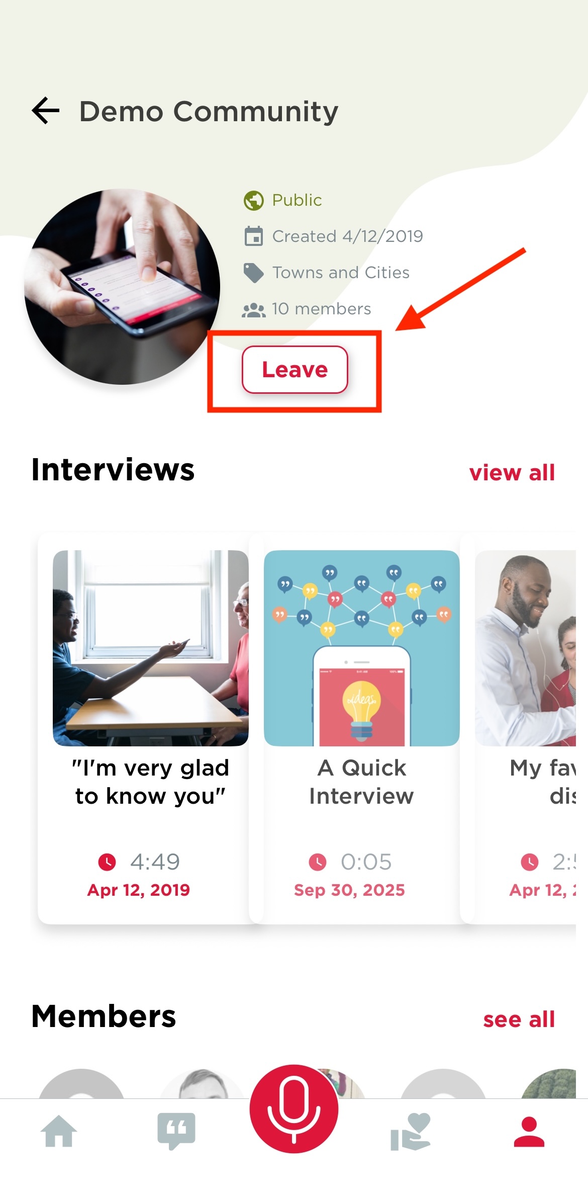 If you decide you’d like to leave a community you are a member of, you can do so on archive.storycorps.org and on the StoryCorps App.